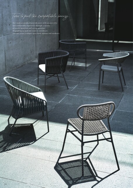 Timetofeelthecomfortablebreeze.Ouroutdoorproductsprovideuserswithanenjoyableandcomfortableexperiencethroughavarietyoftactilematerialsandwovenpatterns.Dependingonhowyouwanttocoordinate,youcancreateauniquespacebothindoorsandoutdoors.120